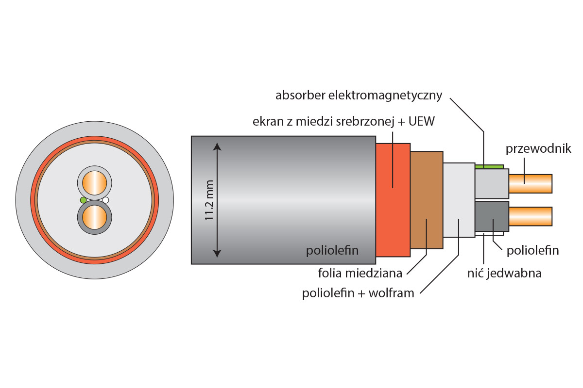 Izolacja: żywica poliolefinowa + żywica poliolefinowa z proszkiem amorficznym i wolframem