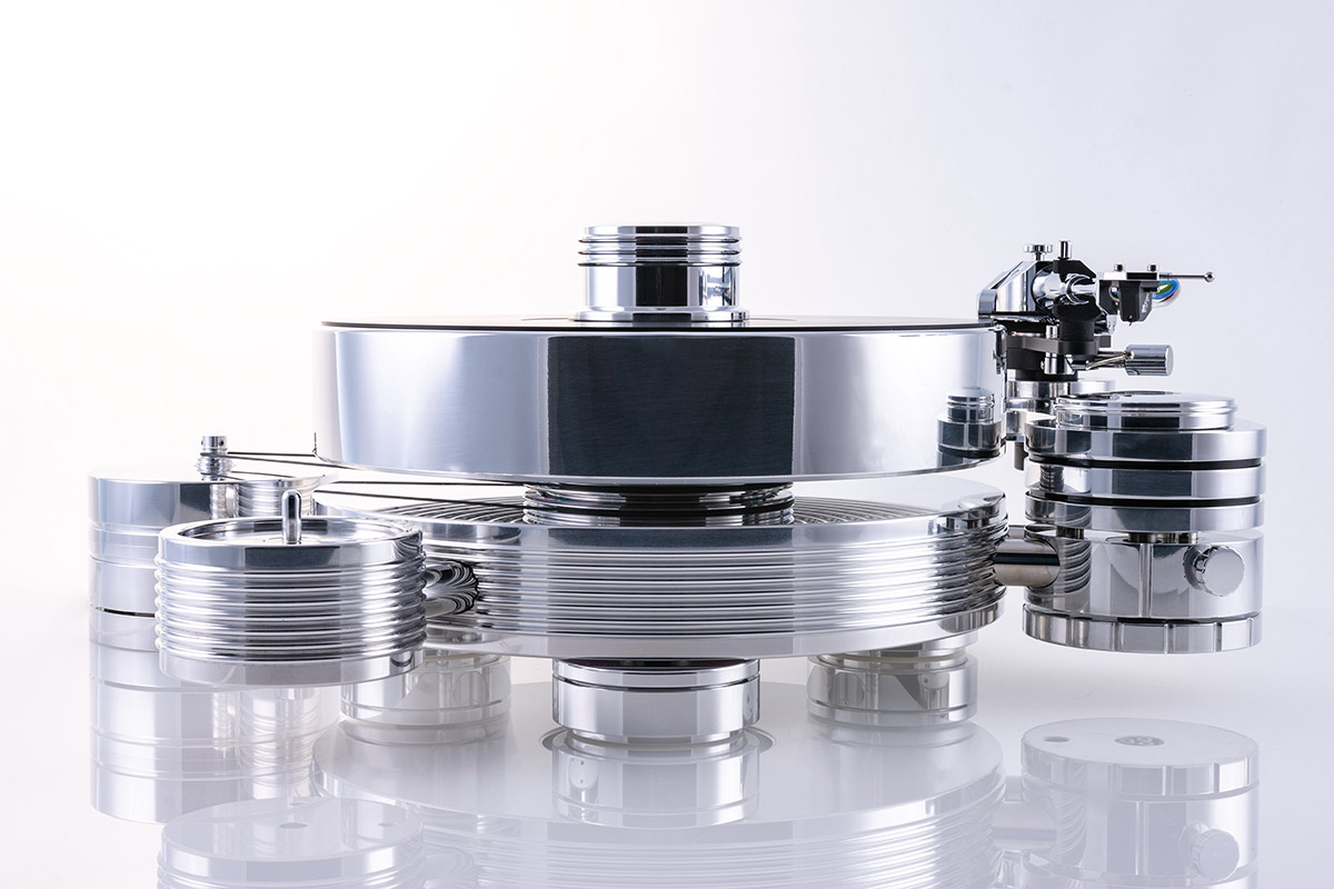 - Talerz: ręcznie polerowane aluminium z nakładką kompozytową, łożysko hydrodynamiczne ze sprzęgłem magnetycznym (TMD), 9 kg, 80 mm