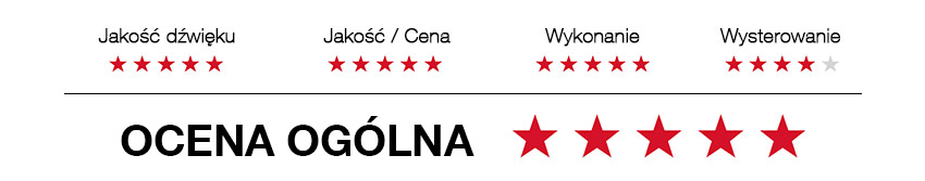 PLUSY: Szybki, zróżnicowany, plastyczny bas o doskonałej kontroli i dynamice. Wielka kultura w odtwarzaniu wysokich tonów oraz czytelna, ale i naturalnie brzmiąca średnica